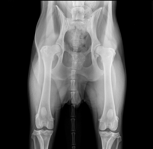 При укладке собаки на спину и движении ее конечности в области тазобедренного сустава можно услышать щелчок при смещении головки сустава по отношению к впадине или звук трения костей друг об друга. Нередко собака испытывает боль при таких манипуляциях, и проводить их позволяет только после обезболивания.