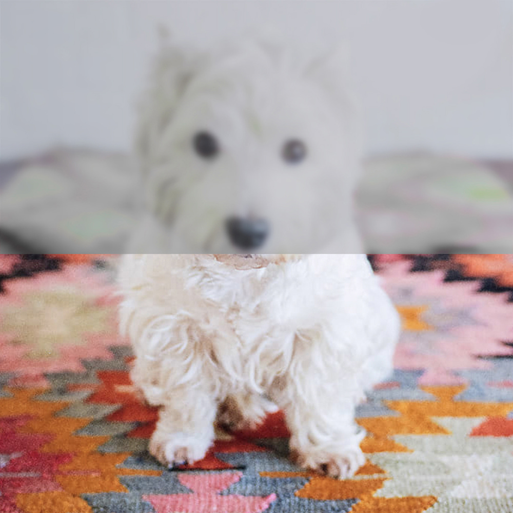 Например, если вы удалите 75 процентов пикселей в нормальном четком изображении, это будет то, что увидит собака.