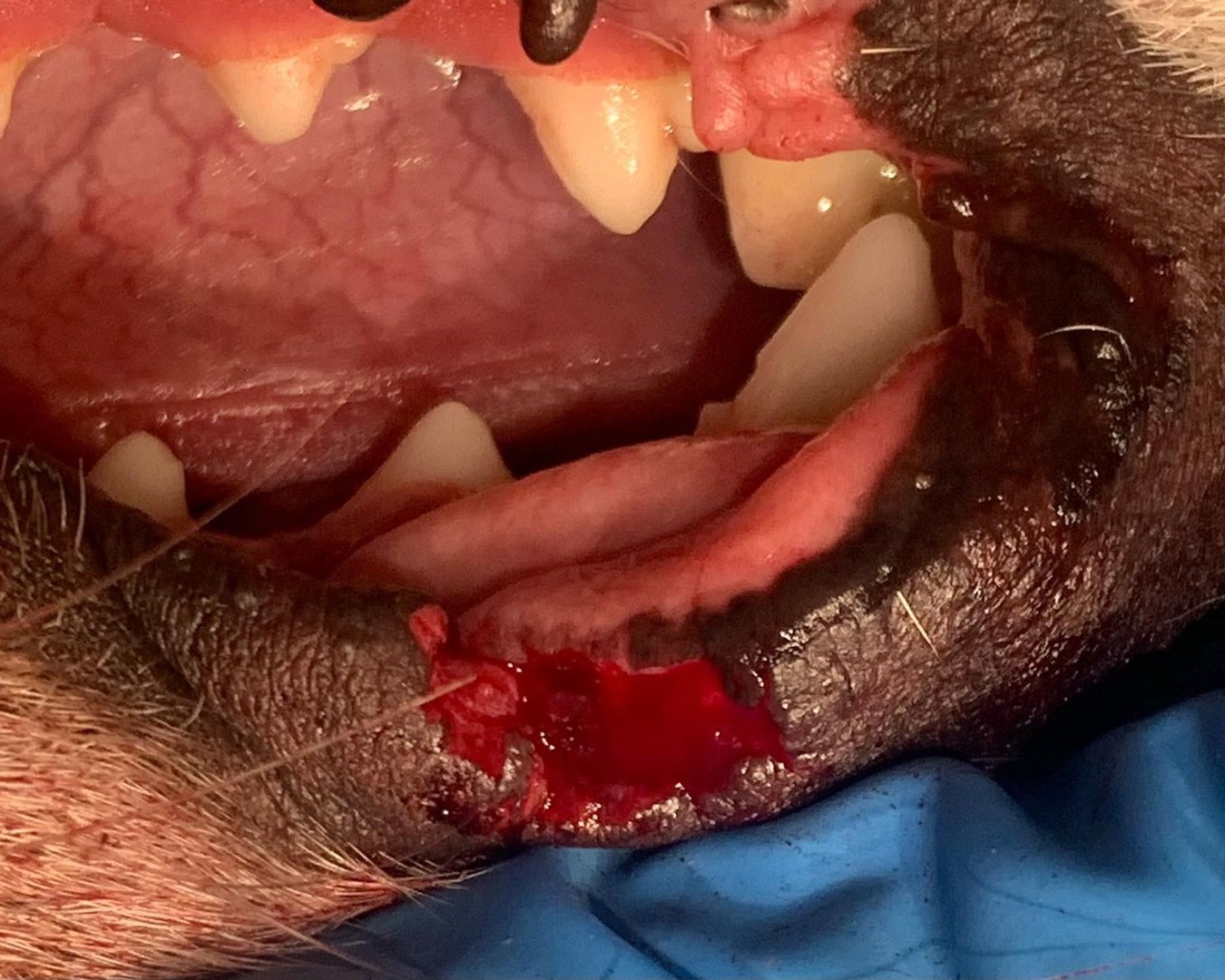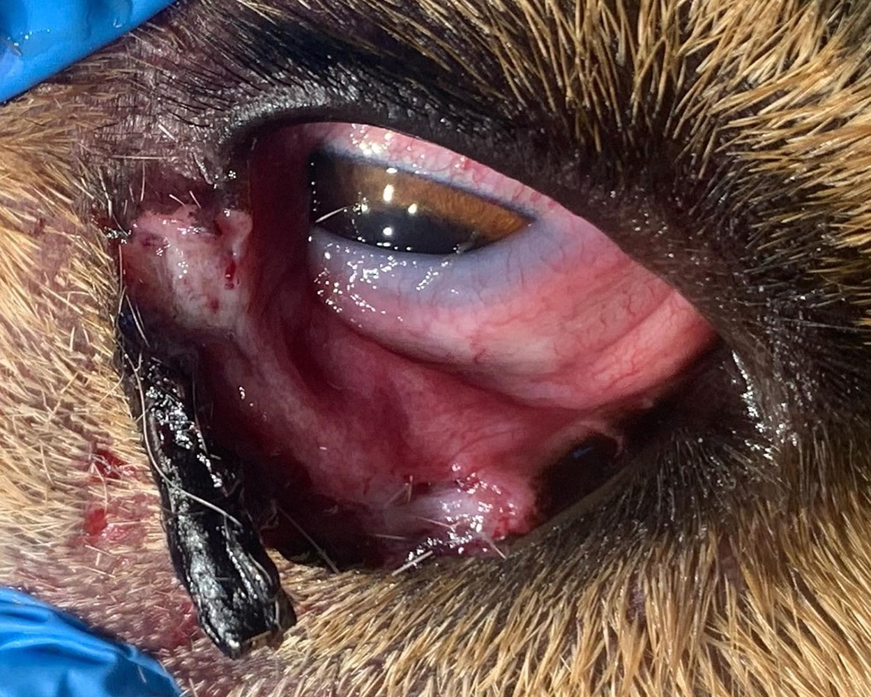 Ветеринарным врачом-офтальмологом было проведено хирургическая пластика века с помощью пересадки ткани с губы