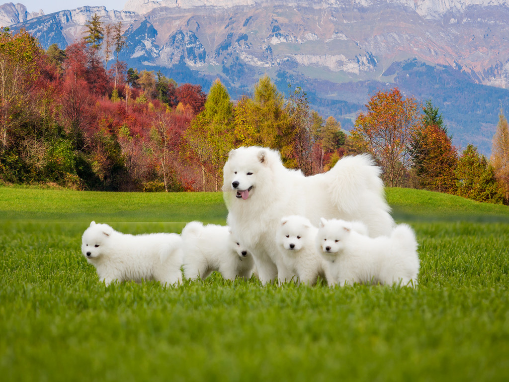 Согласно стандарту, у самоедов допускается следующий окрас: