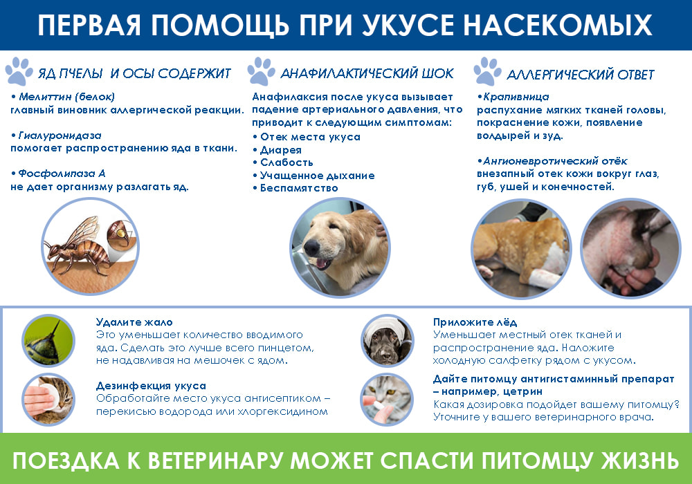 Так же, как люди, домашние животные могут испытывать аллергические или воспалительные реакции из-за укусов разных насекомых, в том числе шершней, пчел и ос и т.д.