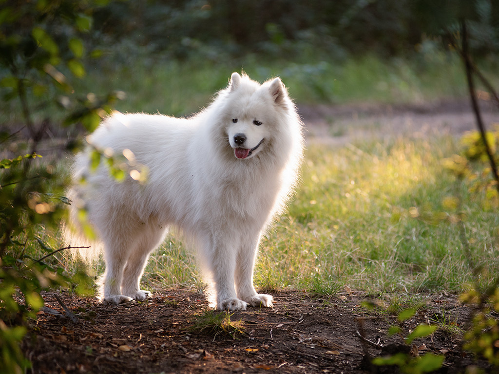 Самоедская лайка, или самоед, — порода собак, которая известна своей белоснежной пушистой шерстью и очаровательной «улыбкой». Она была выведена в Сибири народом самоедов для езды в упряжке и для охоты. Самоеды дружелюбны, игривы и очень общительны. Несмотря на то что они — очень активные собаки, им не нужна чрезмерная физическая нагрузка. Их густая шерсть требует регулярного ухода, чтобы она оставалась чистой и красивой.