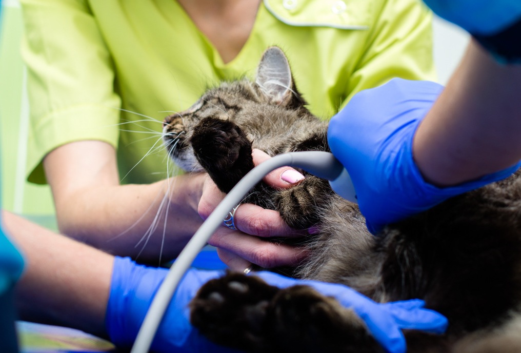 Предварительная голодная диета у собак 8-10 часов, у кошек 6 часов со свободным доступом к воде. В месте контакта датчика механически удаляется шерстный покров (машинкой для стрижки), наносится акустический гель. Пациента укладывают на спину или на бок.