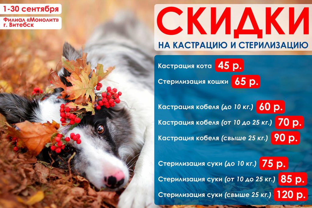 • Стерилизация кошки — 65 руб.